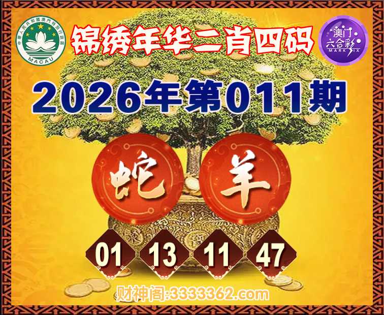 011期: ☺️『锦绣年华』 ☺️二肖四码☺️【蛇】【01.13.11.47】开:羊11