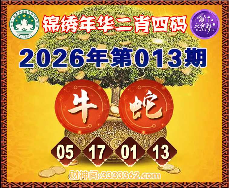 013期: ☺️『锦绣年华』 ☺️二肖四码☺️【牛】【05.17.01.13】开:蛇01