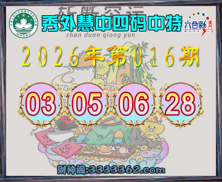 016期:『秀外慧中』 🚡四码中特🚡【03.05.06.28】开:06