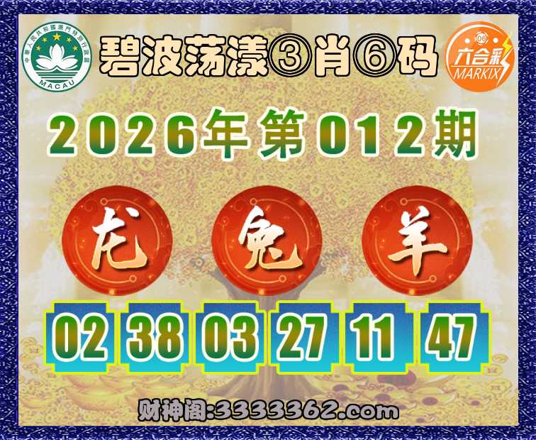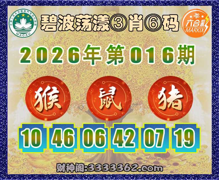 主题 : 016期:碧波荡漾【③肖⑥码】〓 步步发财