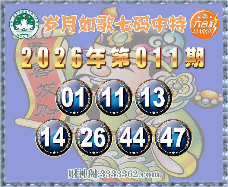 011期:〖岁月如歌〗 🎖️七码中特🎖️【01.11.13.14.26.44.47】开:11