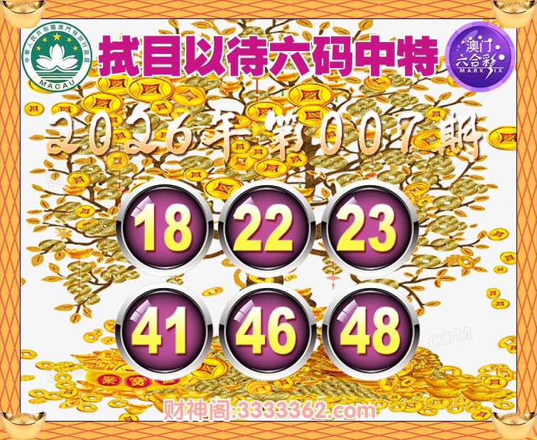 007期:『拭目以待』 🍃六码中特🍃【18.22.23.41.46.48】开:41