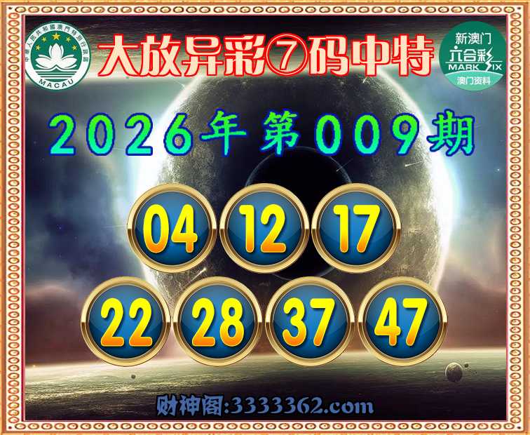 009期:【大放异彩】 ☺️⑦码中特☺️【04.12.17.22.28.37.47】开:28