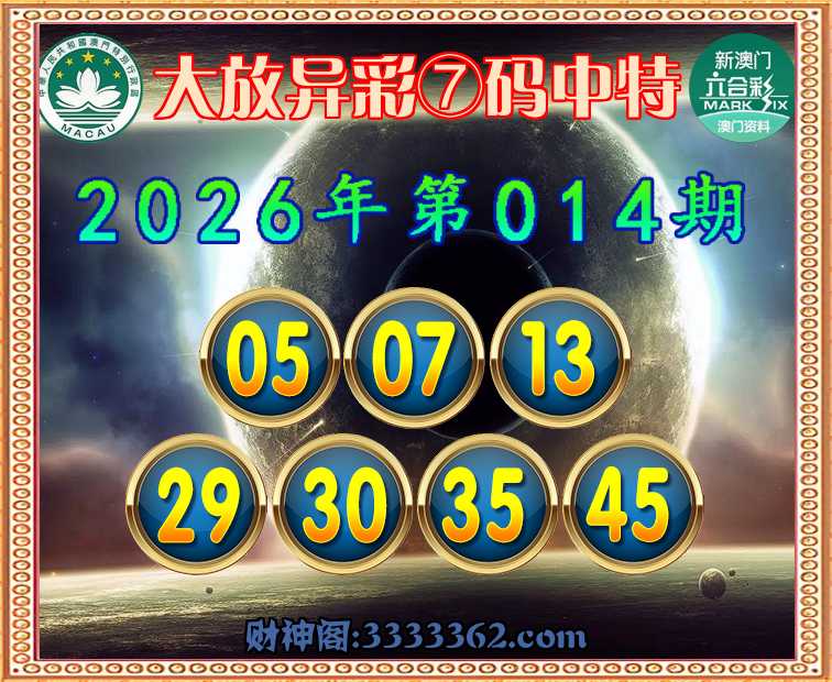 014期:【大放异彩】 ☺️⑦码中特☺️【05.07.13.29.30.35.45】开:00准