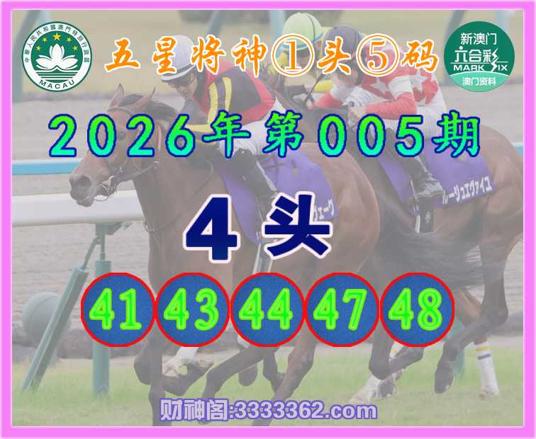 005期: 🩴『五星将神』 🩴①头⑤码🩴【4头主:41.43.44.47.48】开:43