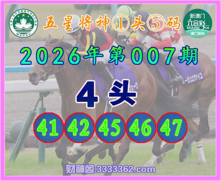 007期: 🩴『五星将神』 🩴①头⑤码🩴【4头主:41.42.45.46.47】开:41