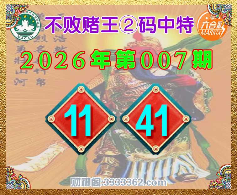 007期:『不败赌王』 🩴②码中特🩴【11.41】开:41