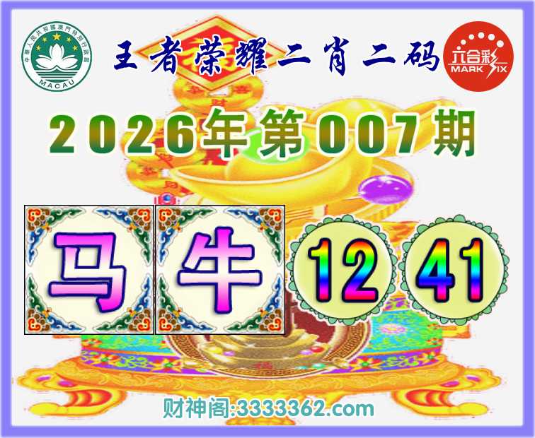 007期: 👘『王者荣耀』 👘二肖二码👘【马】【12.41】开:牛41