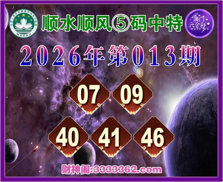 013期:《顺水顺风》 🥽⑤码中特🥽【07.09.40.41.46】开:00准