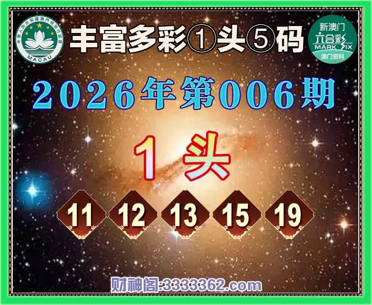 006期:【丰富多彩】 🏃‍♀️①头⑤码🏃‍♀️【1头主:11.12.13.15.19】开:13