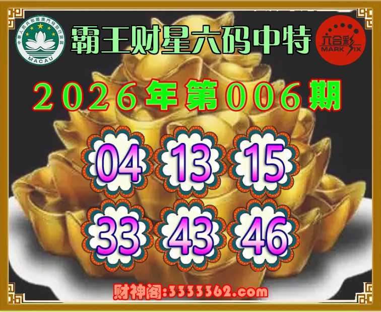 006期:〖霸王财星〗 🤡六码中特🤡【04.13.15.33.43.46】开:13