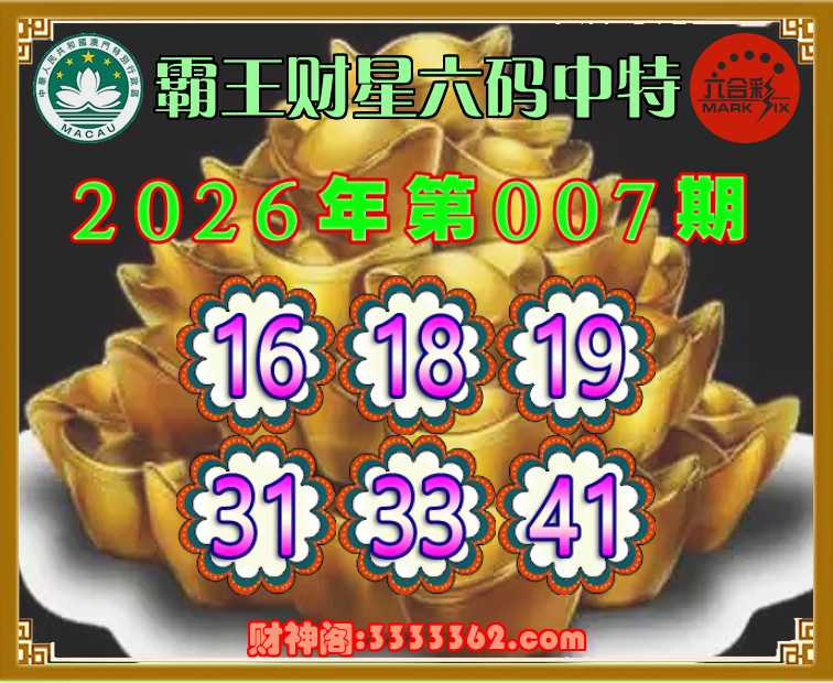 007期:〖霸王财星〗 🤡六码中特🤡【16.18.19.31.33.41】开:41