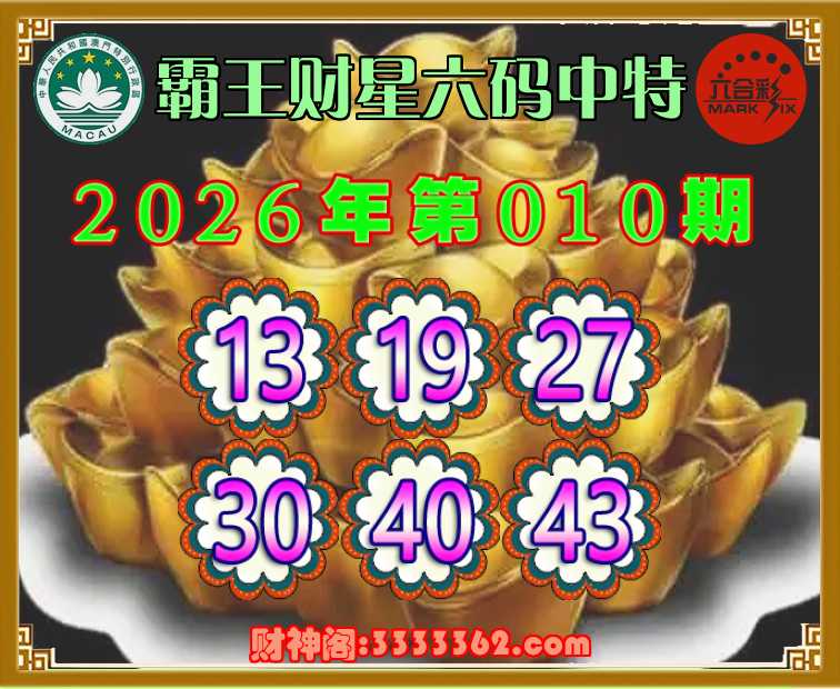 010期:〖霸王财星〗 🤡六码中特🤡【13.19.27.30.40.43】开:27