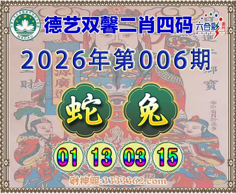 006期:《德艺双馨》 🧩二肖四码🧩【兔】【01.13.03.15】开:蛇13