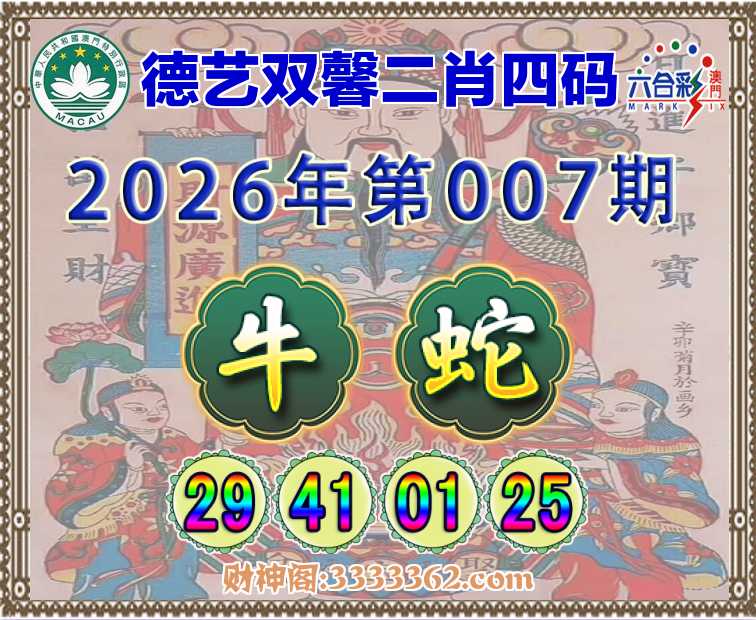007期:《德艺双馨》 🧩二肖四码🧩【蛇】【29.41.01.25】开:牛41