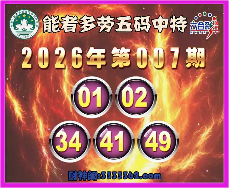 007期: 能者多劳 🐓五码中特🐓【01.02.34.41.49】开:41