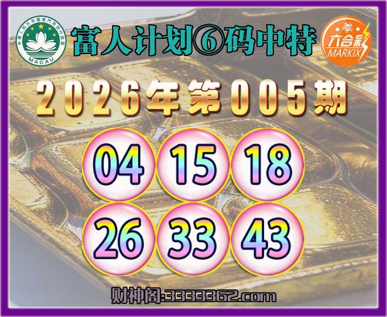 005期:〖富人计划〗 🀄⑥码中特🀄【04.15.18.26.33.43】开:43