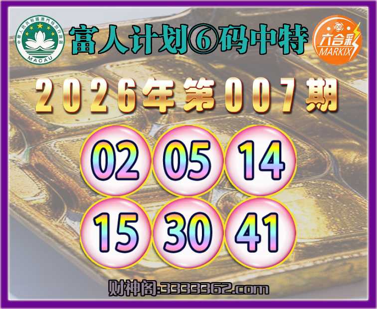 007期:〖富人计划〗 🀄⑥码中特🀄【02.05.14.15.30.41】开:41