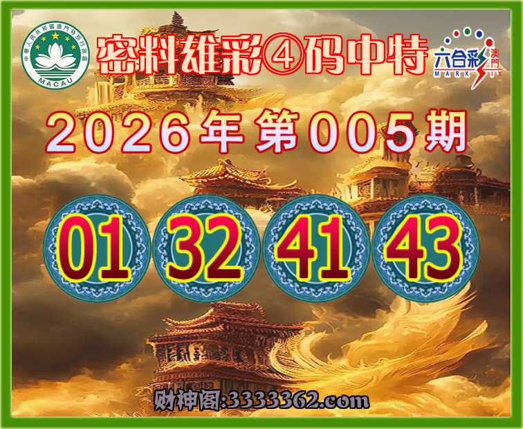 005期:【密料雄彩】 🗡④码中特🗡【01.32.41.43】开:43