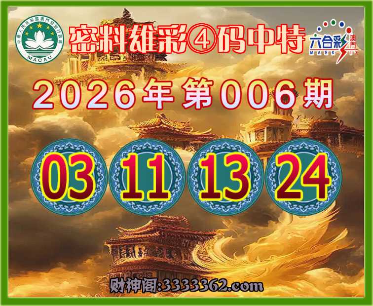 006期:【密料雄彩】 🗡④码中特🗡【03.11.13.24】开:13