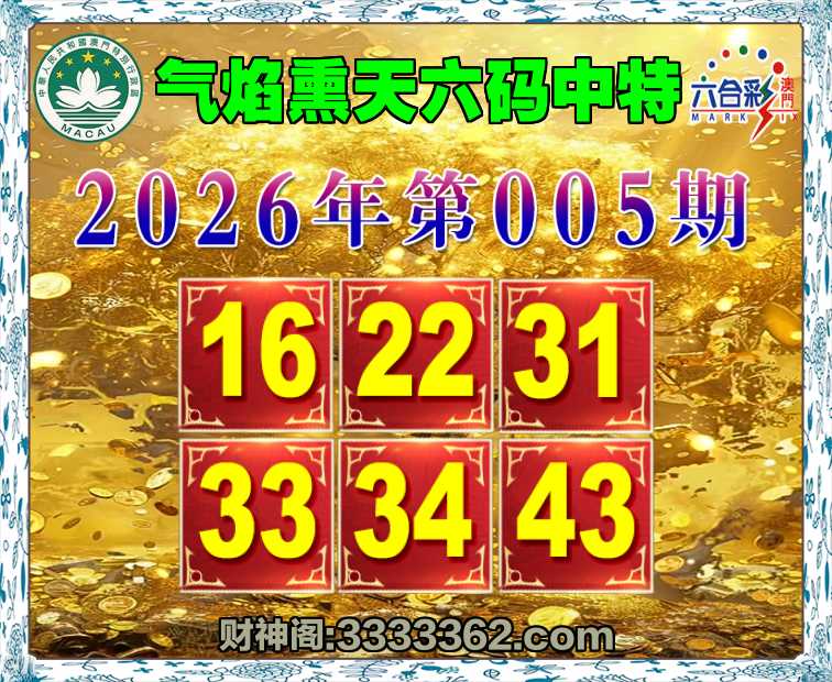 005期:〖气焰熏天〗 🥰六码中特🥰【16.22.31.33.34.43】开:43