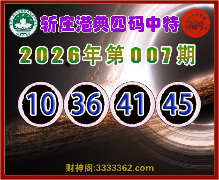 007期:《斩庄港典》 💎四码中特💎【10.36.41.45】开:41