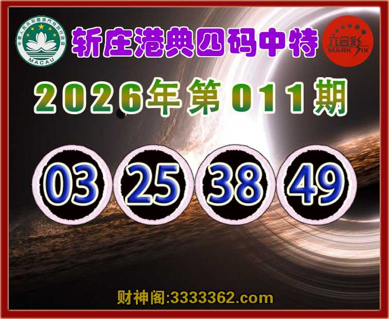 011期:《斩庄港典》 💎四码中特💎【03.25.38.49】开:00准