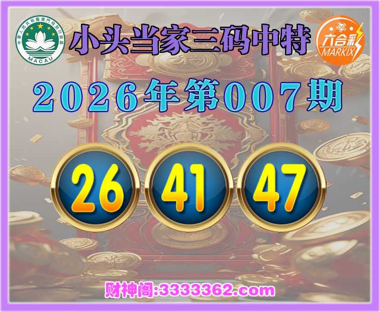 007期: 😳『小头当家』 😳三码中特😳【26.41.47】开:41