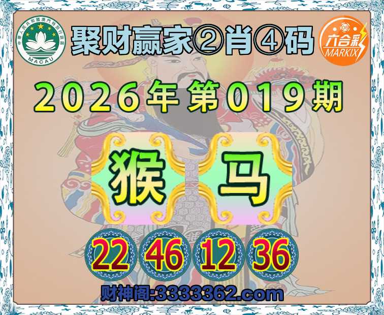 019期:【聚财赢家】 🌸②肖④码🌸【马】【22.46.12.36】开:猴46