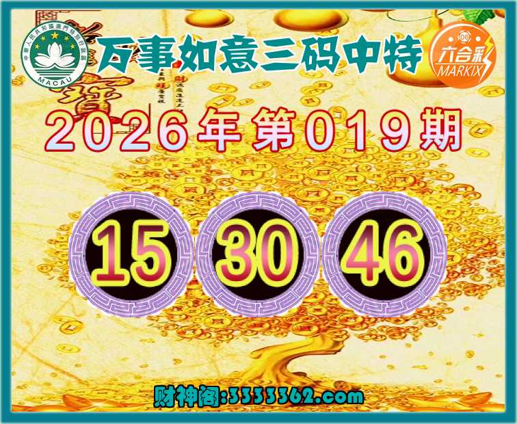 019期:【万事如意】 🌲三码中特🌲【15.30.46】开:46