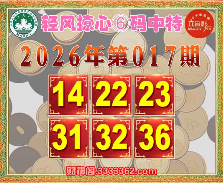 017期:『轻风撩心』 🍒⑥码中特🍒【14.22.23.31.32.36】开:32
